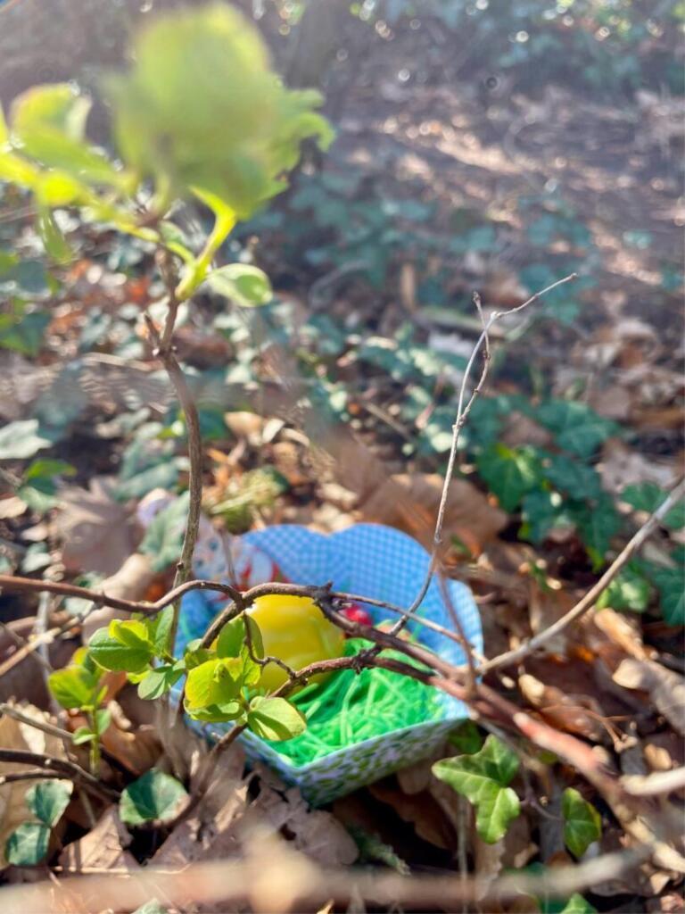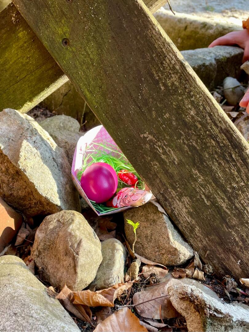 Hinterm Busch da sitzt schon der Osterhas‘.